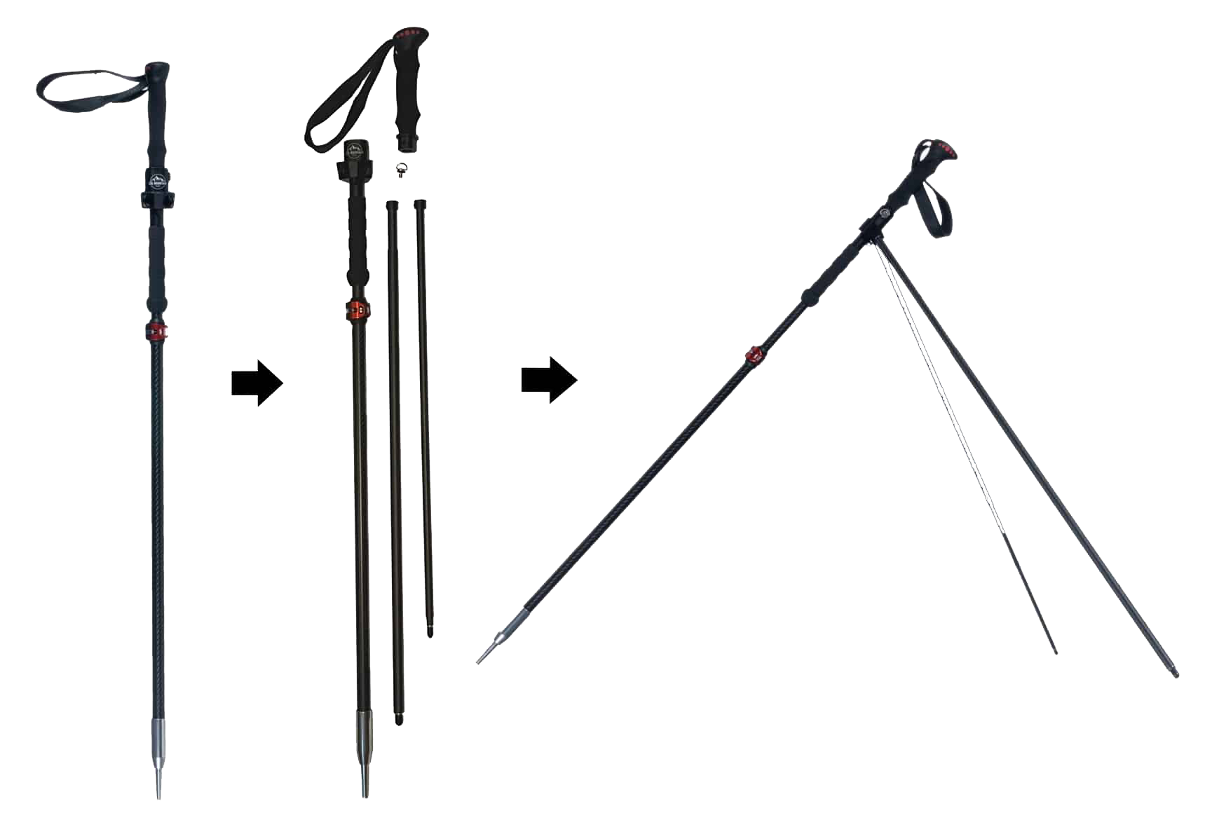 The MTN Stick uses a nesting carbon pole design that breaks down small, packs tight, and locks together in seconds. Each section connects seamlessly, allowing you to build exactly what you need—nothing more, nothing less.