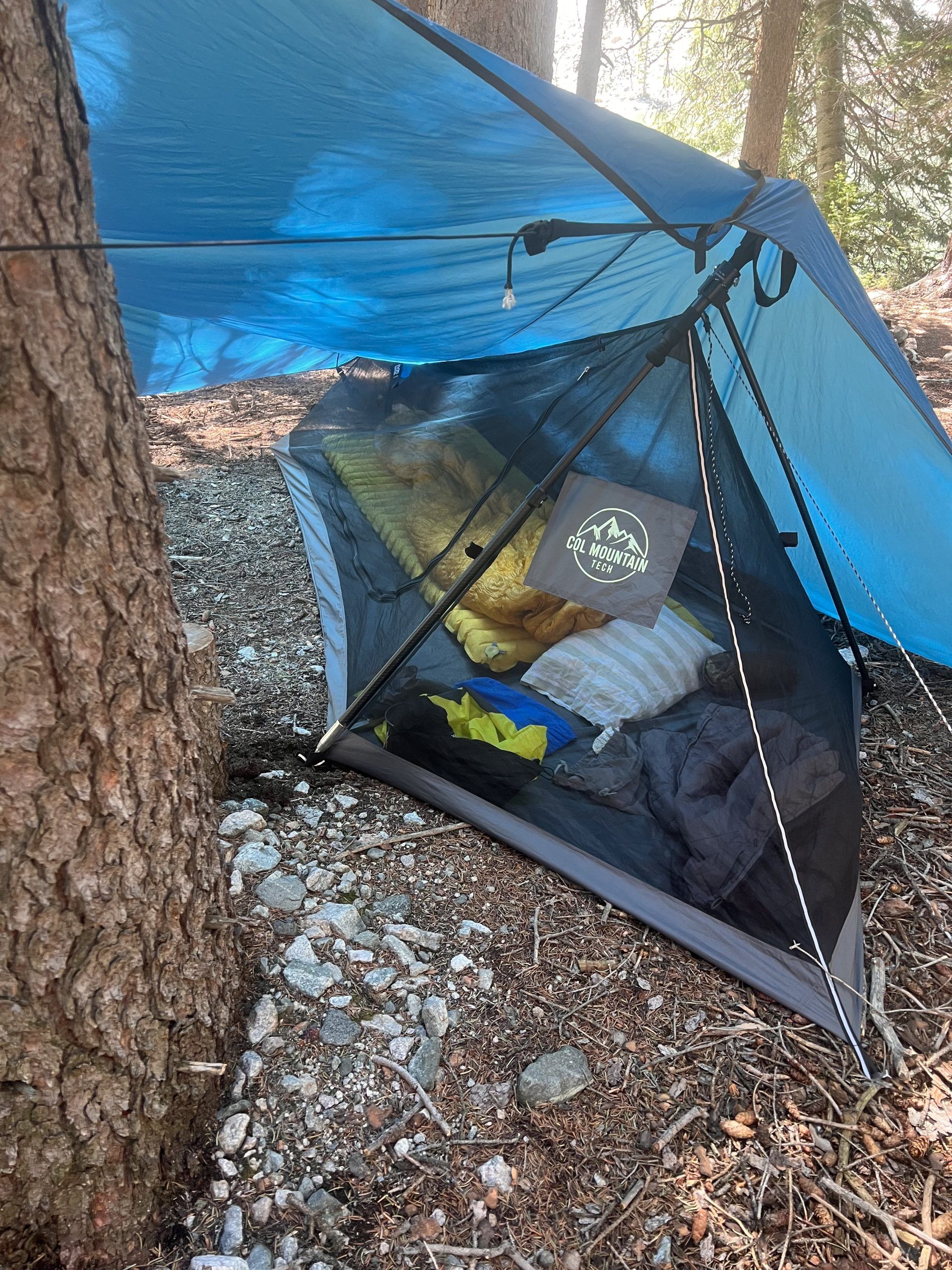 Our tarp is purpose-built to be longer and wider than standard tarps, all while keeping weight to a minimum. Constructed from 15D silicone-impregnated nylon and measuring 9.5′ x 13′, it offers robust, ultralight protection in extreme weather conditions. Whether you’re covering a nylon tent for added storm protection or pitching over a mesh shelter, this tarp provides ample coverage—including space to sit and cook outside your tent while staying dry. When paired with the StarRider, it delivers an exceptionally condensation-free camping experience, even in the rain. Each tie-down point comes with an ABS guyline tensioner, preventing tangles during storage or deployment while offering secure, adjustable tension for a reliable setup. This tarp is an essential addition to any ultralight kit, providing versatile shelter and convenience without compromise.